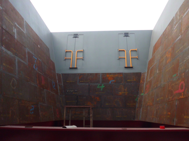 下面的图片展示了39122WESTERN TURNER BROCKMAN PROJECT.料斗。这个项目料斗有两个上部和两个底部部分,总重量是385吨。箱体采用 Davies无螺母紧固系统。